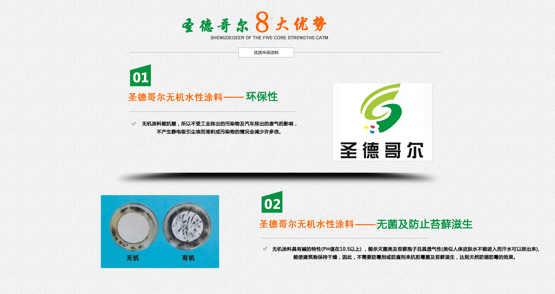 圣德哥爾無機水性涂料有限公司是中法技術合作,集新型墻體材料、地坪裝飾、金屬裝飾保護材料的研制、開發、生產、銷售、服務于一體的科技型、綜合型企業。公司秉承“科技第·一,質量為本,用戶至上”的原則,立足于高標準、嚴要求,擁有現代化生產設備和先進的檢測儀器,已逐步建立起科學完整的結構體系。產品有各種無機內外墻涂料、無機地坪涂料、無機防銹涂料、無機底漆、罩光漆等一系列產品,結構體系完·美、性能質量穩定。產品各項指標達到國家或超過國家標準。